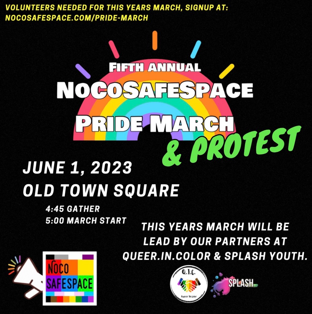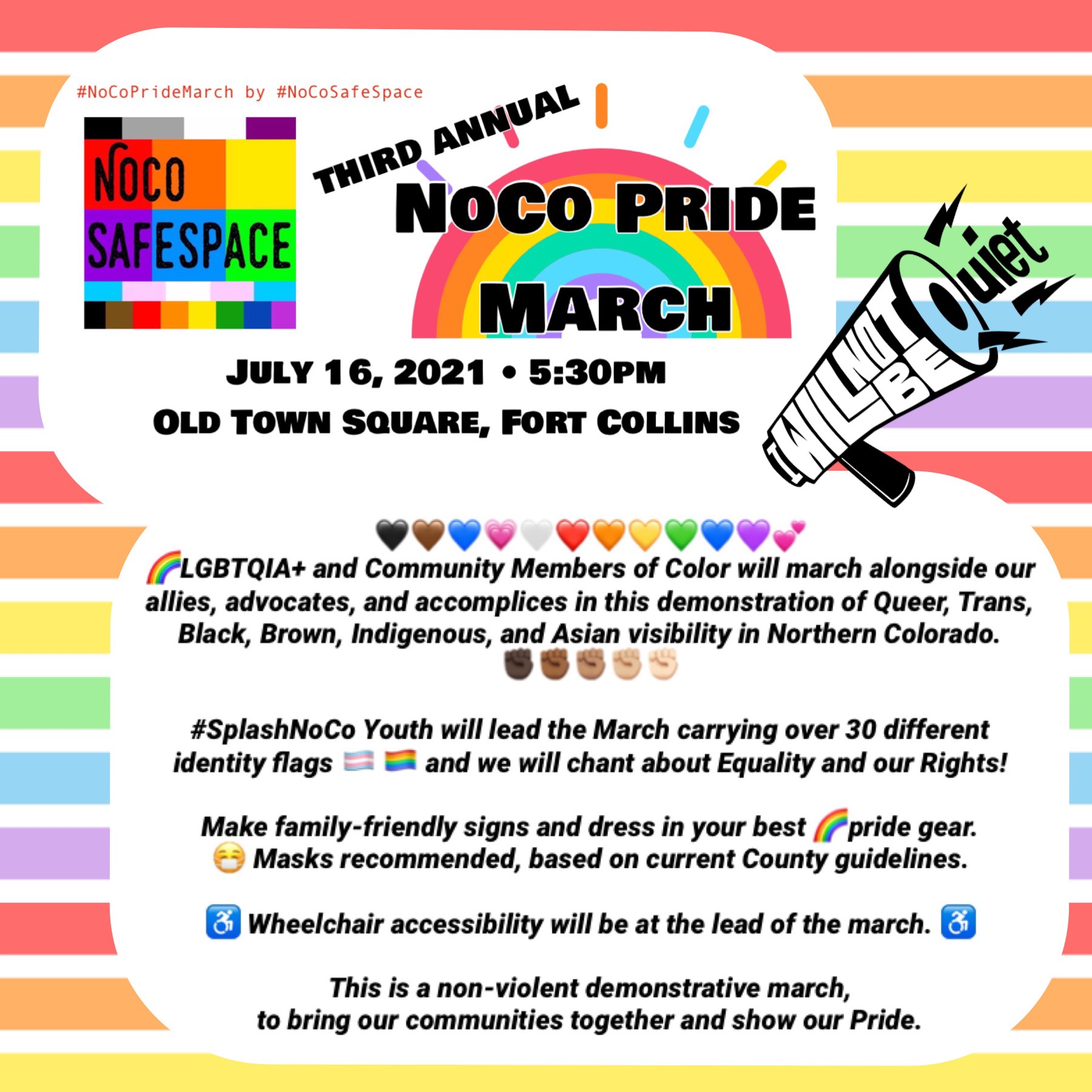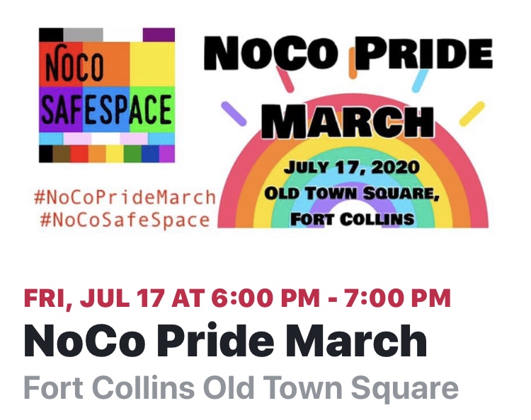 NoCoSafeSpace Annual NoCoPride March is happening in Old Town Fort Collins, July 2021!