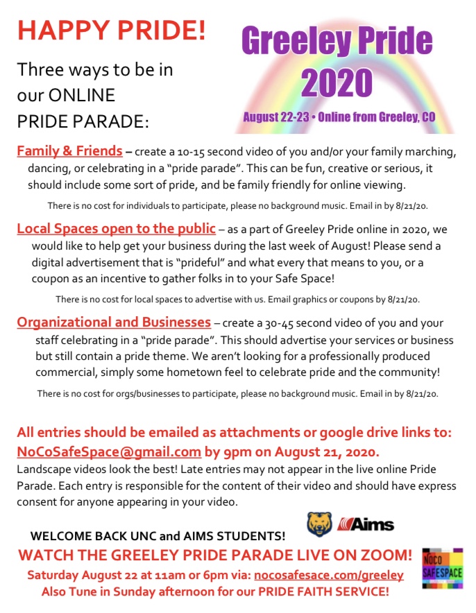 August 23, 2020 Online, multi-denominational Pride Faith Service!